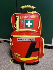 Ob Training, Trainingslager oder Wettkämpfe, Crossläufe, Skiroller oder Langlaufski. Verletzungen können passieren. Die Biathleten und Trainer freuen sich über den Kauf eines Erste Hilfe Notfallrucksacks (mit Rettungsdecke).